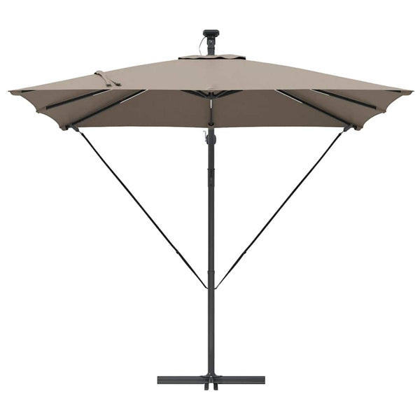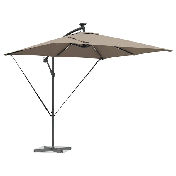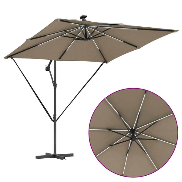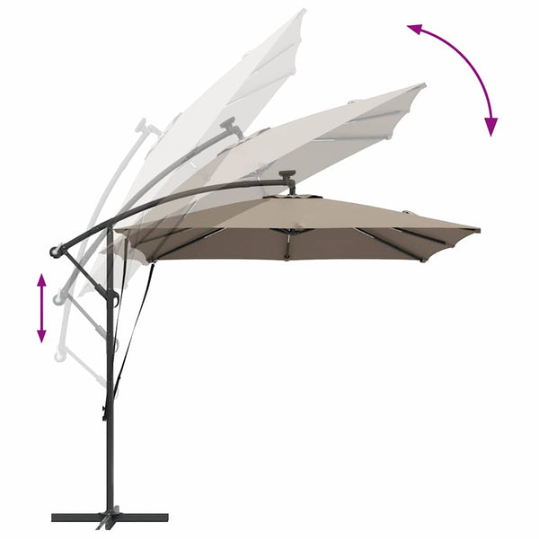 - Kaikki mukana: Varjo tulee kätevän kahvan kanssa, joka helpottaa avaamista ja sulkemista, kallistustoiminto varjostuksen säätämiseksi sekä aurinkosähkön avulla toimivat LED-valot, jotka valaisevat iltasi ilman turhia sähkölaskuja.