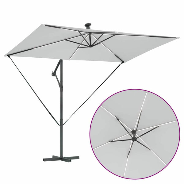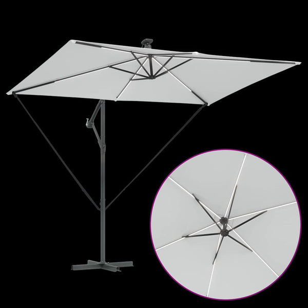 - Aurinkovoimaiset LED-valot: Illan nauttimista varten tämä varjo sisältää kirkkaat, ympäristöystävälliset LED-valot, jotka toimivat aurinkoenergialla. Olitpa sitten järjestämässä takapihan illallista tai myöhäistä keskustelua, luotu mukava tunnelma parantaa mitä tahansa yösesongin ulkoilmakokemusta.