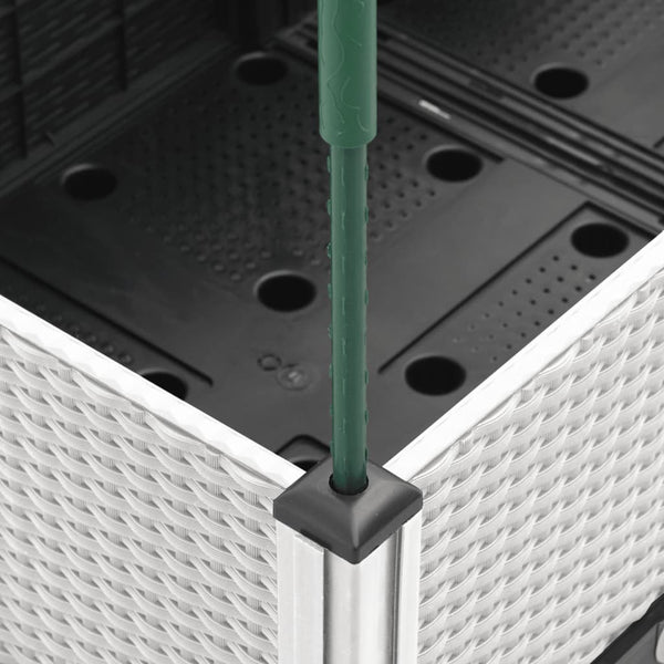 - Käytännöllinen muotoilu: Ihanteellinen pohjakerros auttaa säilyttämään kosteuden ja mahdollistaa helpon vedenpoiston. Lisäksi integroitu säleikkö tarjoaa mahtavan tuen kasvaville köynnöskasveille, kuten tomaateille, herneille ja ruusuille.