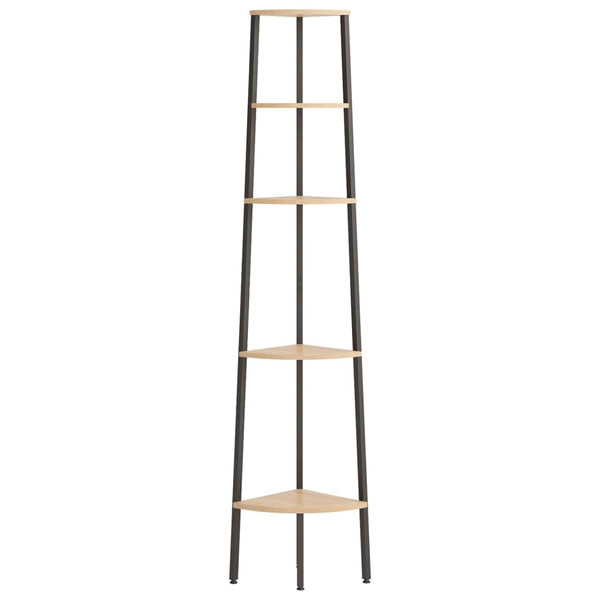 Vaaleanruskea ja musta 5-kerroksinen kulmahylly 45,5x31,5x180cm