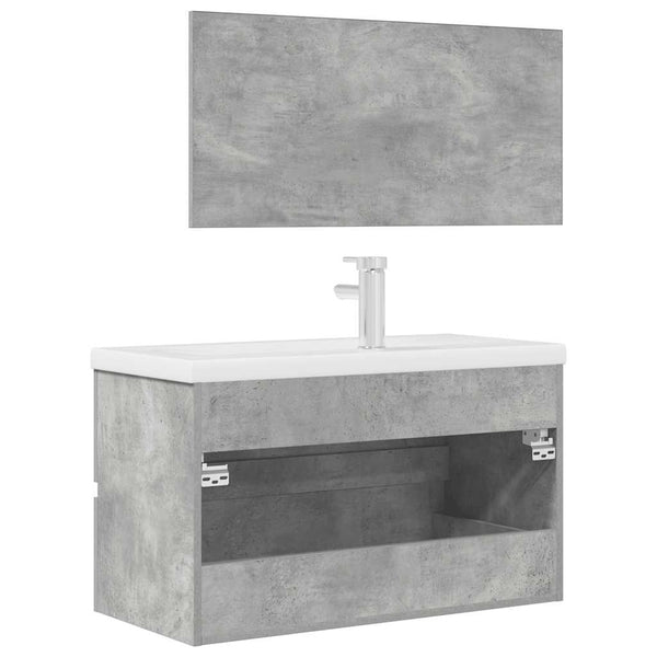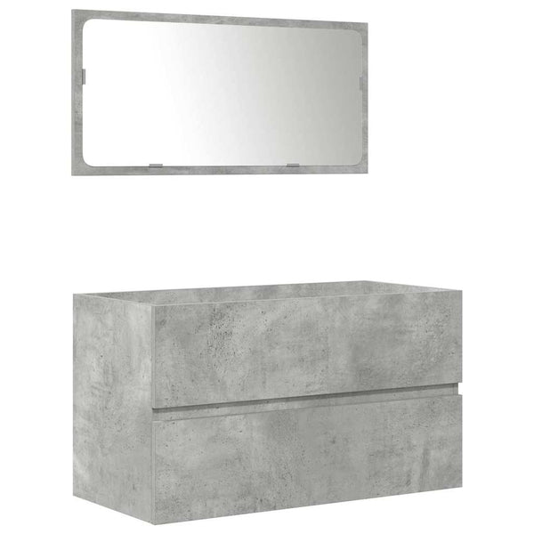 Betoninharmaa kylpyhuonekalustesarja 3-osainen, puinen