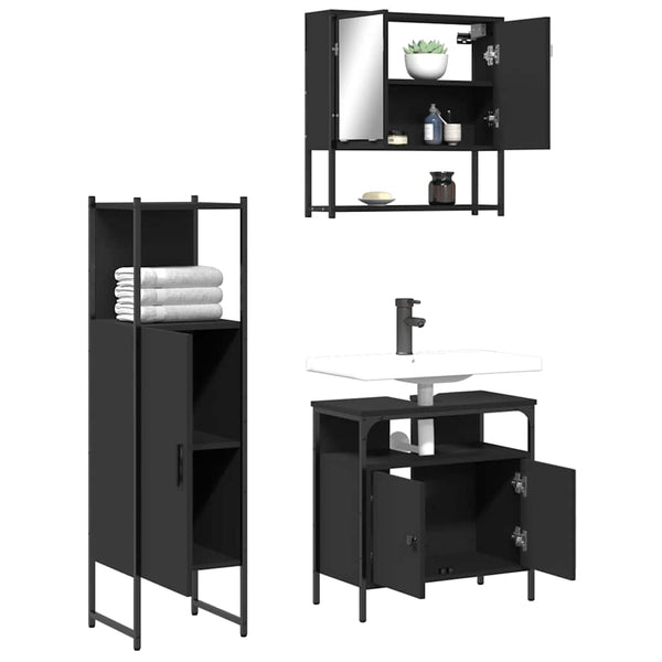 Musta kylpyhuonekalustesarja 3-osainen, puinen