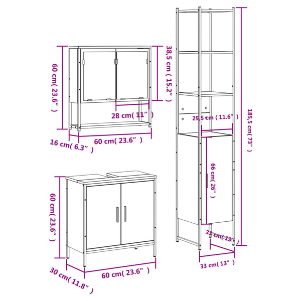 Musta kylpyhuonekalustesarja 3-osainen, puinen