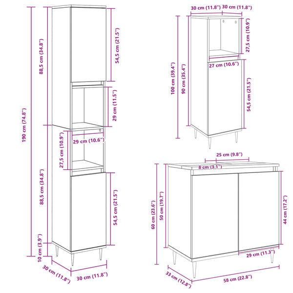 Sonoma-tammi kylpyhuonekalustesarja puu 3-osainen