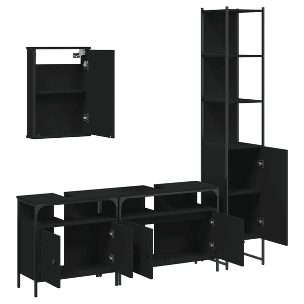 Musta kylpyhuonekalustesarja 4-osainen, puinen