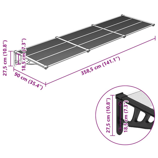 Musta ja läpinäkyvä ovikatos 358,5x90cm polykarbonaatti