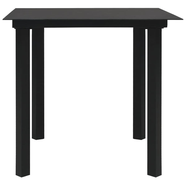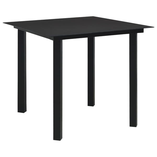 Musta puutarhan ruokapöytä 80x80x74cm teräs ja lasi