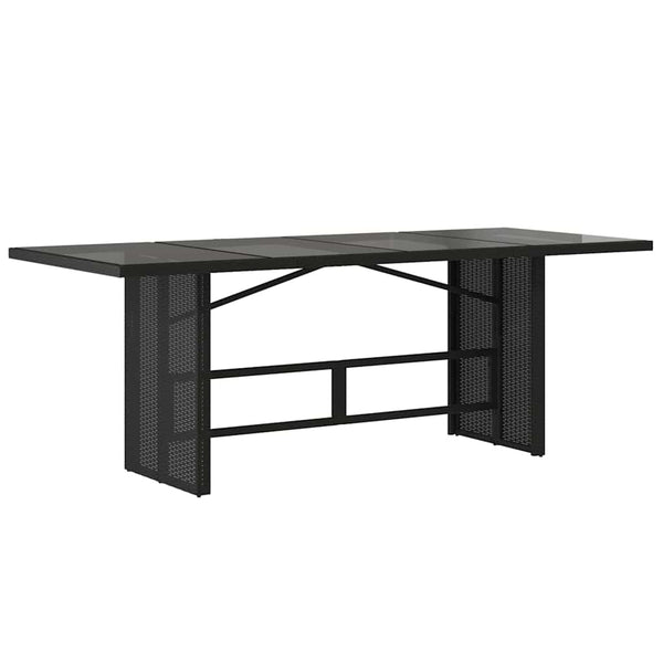 Musta puutarhapöytä lasipöytälevy 190x80x74cm polyrottinki
