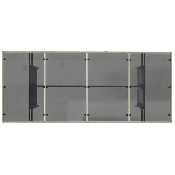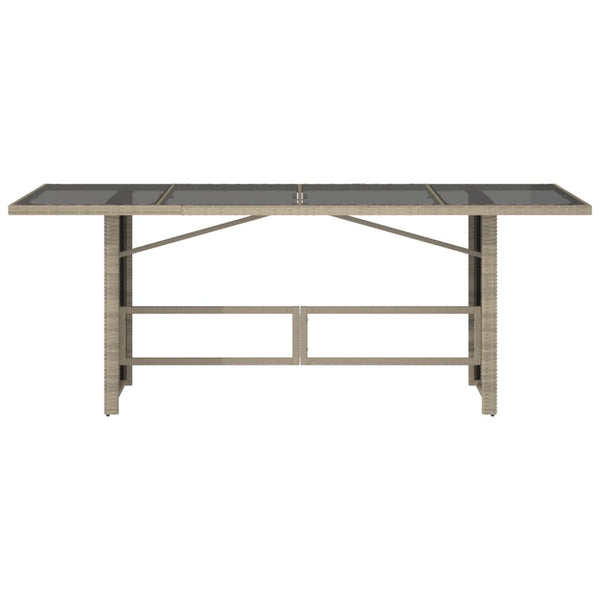 Harmaa puutarhapöytä lasipöytälevy 190x80x74cm polyrottinki