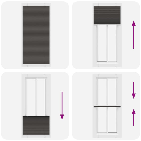 - Kaksi asennustapaa: Voit kiinnittää laskostetun kaihtimen seinään tai ikkunaan ruuveilla tai ilman porausta kiinnityskannattimilla tarpeen mukaan.