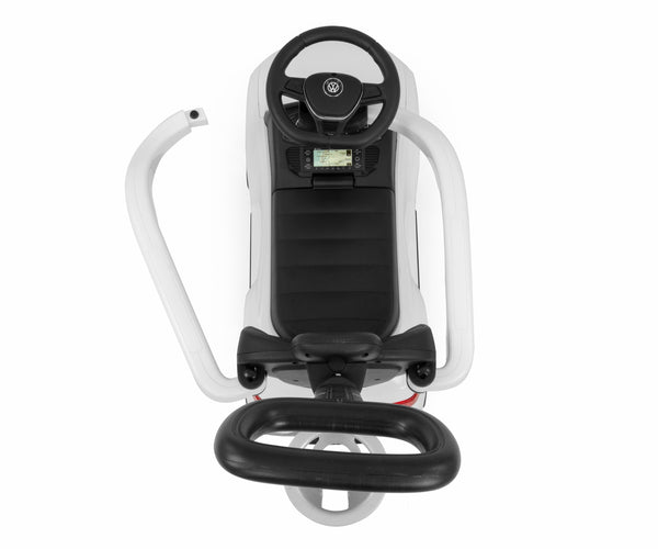 Potkuauton kolmipuolainen kierownica, joka on varustettu VW-logolla, klaksonilla ja iloisilla melodioilla, tarjoaa lapselle interaktiivisia elementtejä, jotka pitävät mielenkiinnon yllä. Musiikki ja äänet stimuloivat lapsen kuuloaistia ja auttavat kehittämään motorisia taitoja leikin lomassa.Mukana tulevat lisävarusteet ja säädettävyys