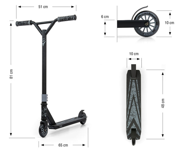 MMX Buster Potkulauta Harmaa on täydellinen valinta aktiivisille nuorille ja aikuisille, jotka haluavat kokea uuden tason potkulautailussa. Sen kestävyys, suorituskyky ja tyylikäs muotoilu tekevät siitä ihanteellisen valinnan kaikille, jotka vaativat laadukasta ja luotettavaa potkulautaa. Osta omasi jo tänään ja aloita freestyle-potkulaudan maailmanvalloitus turvallisesti ja tyylillä!