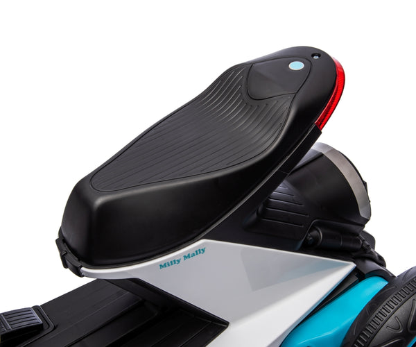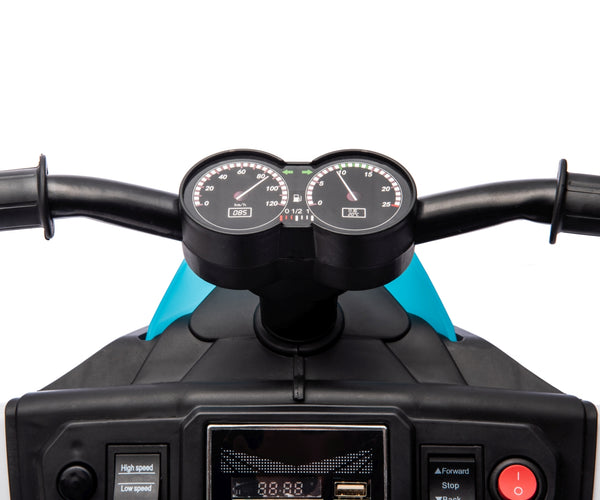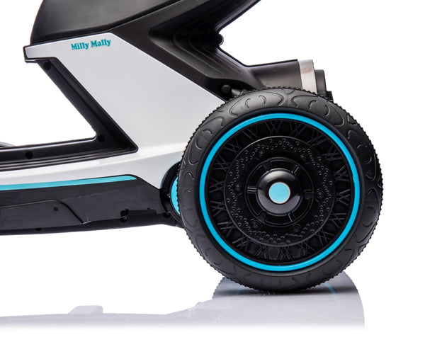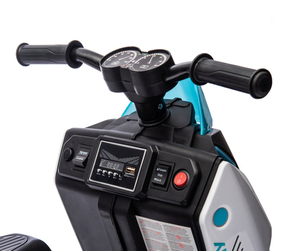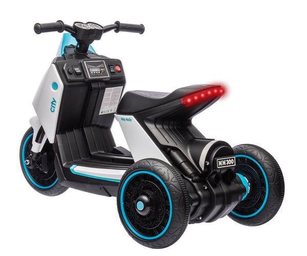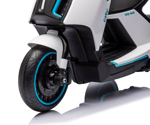 Skootterissa on kaksi suurta takapyörää ja yksi etupyörä, jotka takaavat maksimaalisen vakauden ja turvallisuuden ajon aikana. Lisäksi ajoneuvossa on LED-valot edessä ja takana, jotka parantavat näkyvyyttä ilta-aikaan. Musiikkipaneeli sekä MP3, USB, AUX ja SD-korttipaikat tarjoavat lapsille mahdollisuuden kuunnella suosikkikappaleitaan ajaessaan.