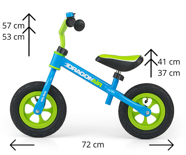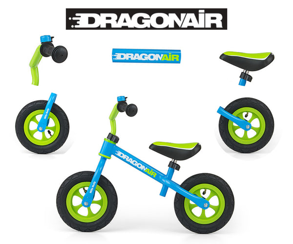 Potkupyörä DRAGON AIR on varustettu leveillä, puhallettavilla renkailla, jotka takaavat vakauden ja turvallisuuden – näin nuori pyöräilijä voi helposti säilyttää tasapainonsa. Uritetut renkaat toimivat kaikilla pinnoilla.