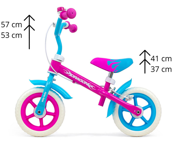 Juoksupyörä DRAGON jarrulla on ihanteellinen ratkaisu lapsille, jotka vasta opettelevat ajamaan tasapainopyörällä. Pyörästä puuttuvat polkimet, mikä mahdollistaa lapsen keskittyä tasapainon ylläpitoon ja ajosuuntaan.