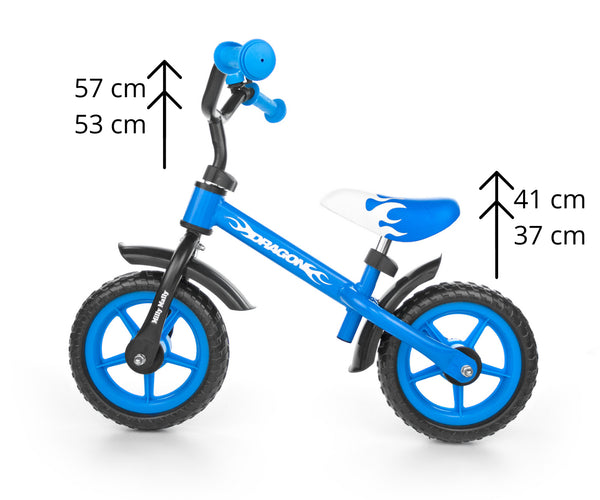 Potkupyörä DRAGON on ihanteellinen ratkaisu lapsille, jotka vasta aloittavat potkupyörällä ajamisen. Pyörässä ei ole polkimia, mikä auttaa lasta keskittymään tasapainon ylläpitämiseen ja ajosuunnan hallintaan.