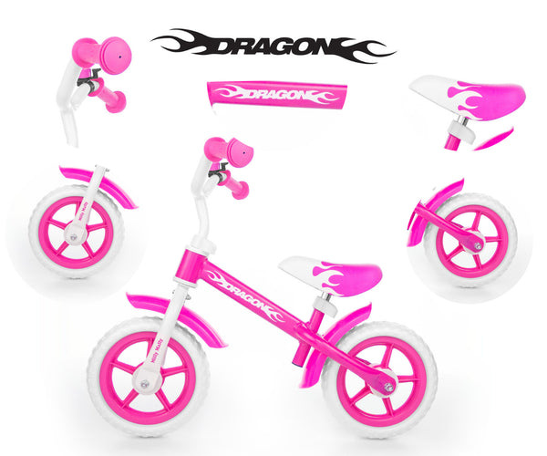 DRAGON juoksupyörä on ihanteellinen ratkaisu lapsille, jotka aloittavat juuri juoksupyörän käytön. Pyörässä ei ole polkimia, mikä auttaa lasta keskittymään tasapainon ja suunnan ylläpitämiseen.
