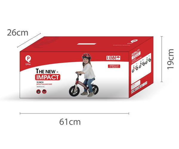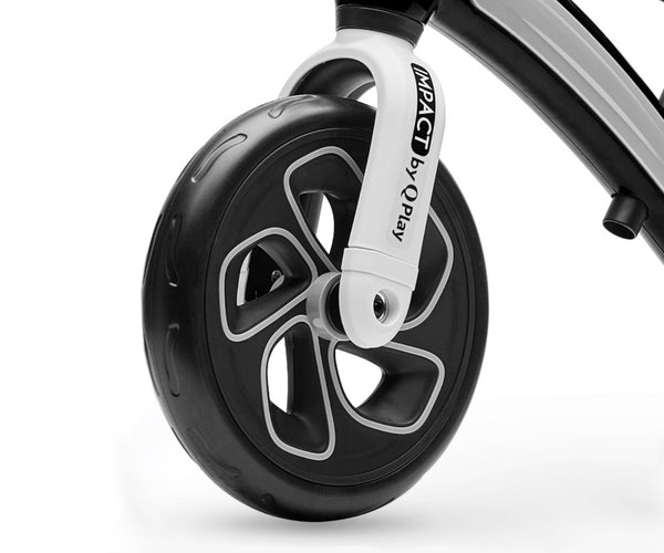QPlay Impact potkupyörä tarjoaa ainutlaatuisen runkodesignin, joka on peitetty värikkäällä muovikuorella. Sen 10-tuumaiset renkaat takaavat vakauden. Säädettävä ohjaustanko ja istuin mukautuvat lapsen kasvuun, ja pehmeä satulan pehmuste tuo mukavuutta.