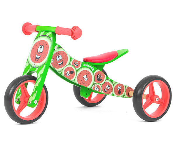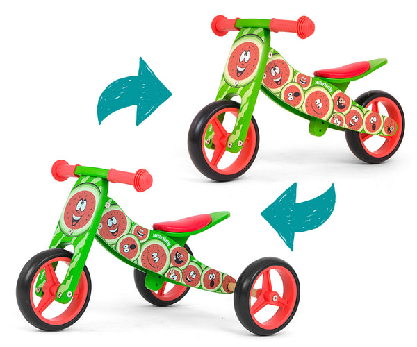 Kolmipyöräisen pyörän muuttaminen kaksipyöräiseksi juoksijaksi on arvokas ominaisuus. Tämän ansiosta lapsenne nauttii tämän erityisen pyörän käytöstä pidempään, ja se kasvaa yhdessä hänen kanssaan. Pehmeät, liukuesteiset kahvat suojilla takaavat lapsen käsien suojan ja säädettävä satulankorkeus mahdollistaa oikean korkeuden säätämisen lapsen pituuden mukaan. Siinä on myös ohjausrajoitin, jotta lapsi ei kääntäisi ohjaustangon liian kauas ja estäisi ajon.