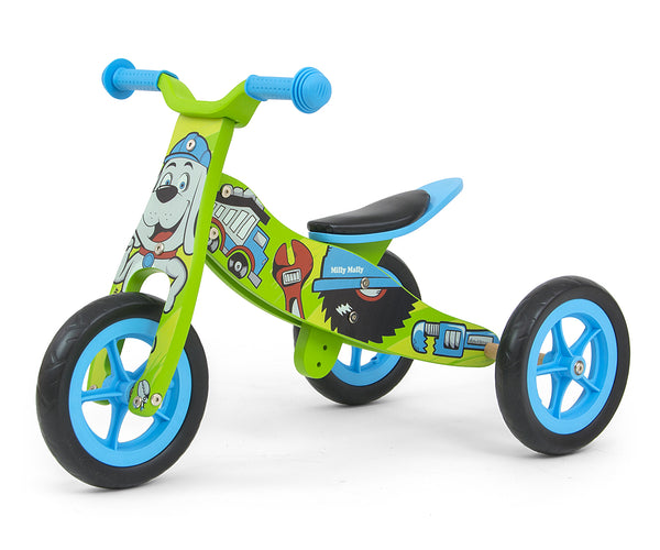 Erinomaisena etuna on, että pyörä voidaan muuttaa kolmipyöräisestä kaksipyöräiseen potkupyörään. Tämän ansiosta lapsesi voivat nauttia sen käytöstä pitempään, ja pyörä "kasvaa" heidän mukanaan. Pehmeät, liukumattomat kahvat suojilla suojaavat lapsen käsiä, ja istuimen säädettävä korkeus mahdollistaa sopivan korkeuden säätämisen lapsen pituuden mukaan. Siinä on myös ohjauksen rajoitin, jotta lapsi ei käännä ohjaustankoa liikaa ja estä ajoa.
