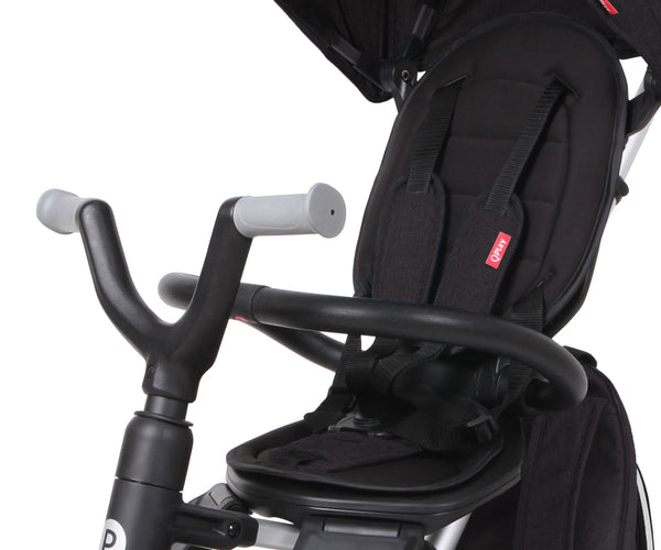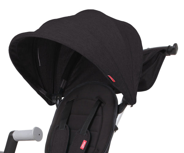 Poistettavat lisävarusteet – suojakaari, kuomu ja työntökahva voidaan irrottaa, jolloin kolmipyörä muuntuu perinteiseksi lasten polkupyöräksi
