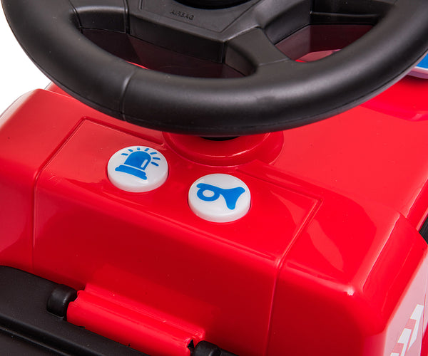 Paloautossa on lisäksi kätevä säilytyslokero istuimen alla, johon lapsi voi kätevästi säilöä leluja ja muita aarteita. Tuote on helppo koota ja siinä on metalliset akselit, jotka takaavat pitkän käyttöiän. Ajoneuvo on suunniteltu 12-36 kuukauden ikäisille lapsille, ja se kestää maksimaalisen 25 kg painon.