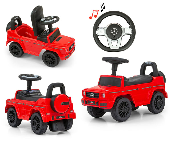 Milly Mallyn Mercedes G350D punainen potkuauto on suunniteltu tuottamaan iloa ja edistämään motorisia taitoja pienille lapsille. Tämä tuote on valmistettu korkealaatuisista materiaaleista ja se on suunniteltu kestämään useita vuosia. Tutustu, miksi tämä Milly Mallyn potkuauto on täydellinen valinta lapsesi ensimmäiseksi ajoneuvoksi.Innovatiivinen Muotoilu ja Turvallisuus