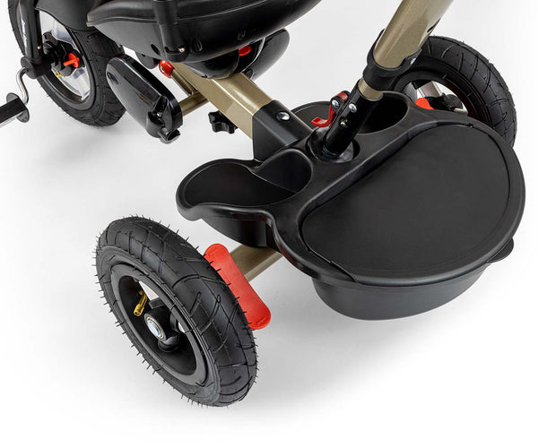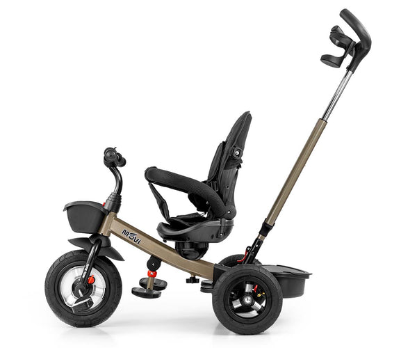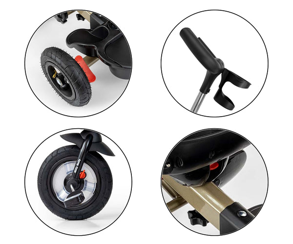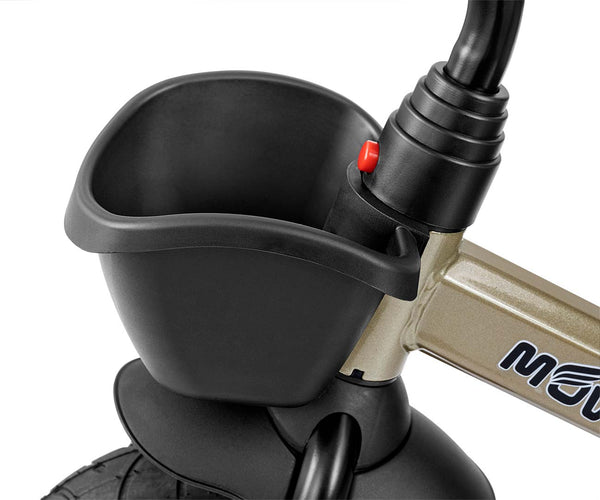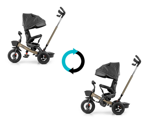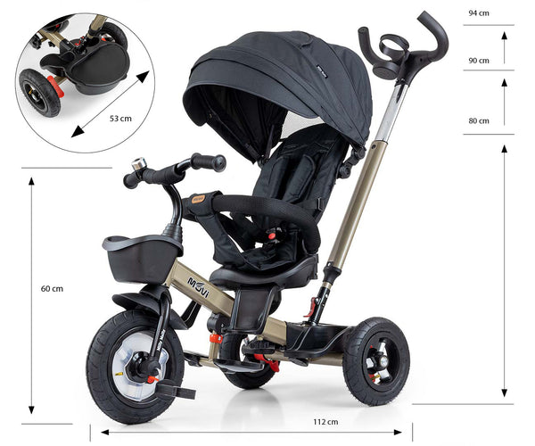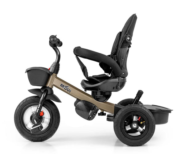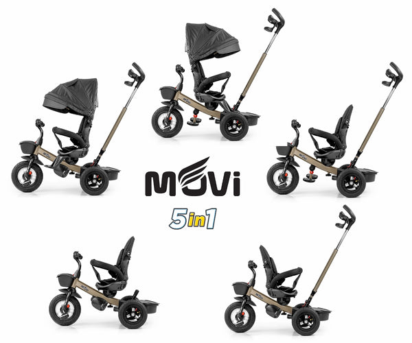 Movi Gold Kolmipyörä on suunniteltu tarjoamaan maksimaalista mukavuutta ja turvallisuutta pienille käyttäjilleen sekä helppoutta vanhemmille. Pyörän 360 asteen kääntyvä istuin mahdollistaa lapsen matkustamisen joko kasvot menosuuntaan tai vanhempaa kohti, mikä lisää vuorovaikutusta ja turvallisuuden tunnetta. Lisäksi istuimen korkeus ja kallistuskulma ovat säädettävissä, mikä takaa optimaalisen asennon lapselle.