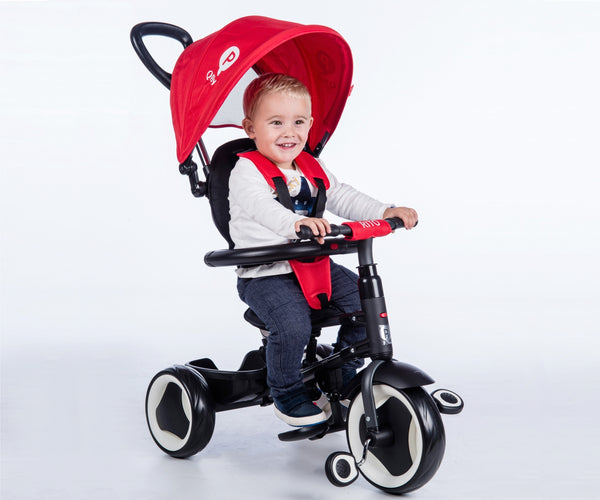 Muunneltava rakenne – Irrottamalla työntökahvan, turvakaaret, katoksen ja istuinsuojan, pyörä muuttuu tavalliseksi kolmipyöräksi