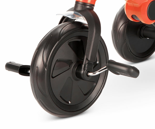 Qplay Ant Plus on varustettu kestävällä teräsrungolla ja EVA-materiaalista valmistetuilla renkailla, jotka ovat sekä kestäviä että läpäisemättömiä. Kolmipyörän tukeva rakenne ja laajat renkaat takaavat vakaan ja turvallisen ajokokemuksen pienille kuskeille. Lisäksi turvallisuutta lisäävät kätevät kaksipistevaljaat ja etupyörän yllä oleva roiskesuoja.