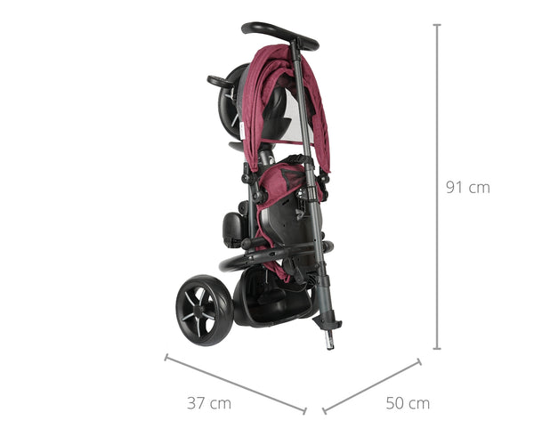 - Pyörän korkeus: 104 cm - Työntöaisan korkeus: säädettävä 96 – 82 cm - Kierroksen leveys: 38,5 cm - Maasta ohjaustankoon: 57 cm - Maasta istuimeen: 35 cm - Etu- ja takapyörän välimatka: 31 cm - Kokonaispituus: 105 cm - Leveys: 50 cm - Pyörien halkaisija: etu – 26 cm, takana - 22 cm - Istuimesta polkimiin: 36 cm - Istuimesta ohjaustankoon: 22,5 cm - Selkänojan korkeus: 38 cm, kaksi asentoa - Kokoontaitettuna: 85 x 38 x 36 cm - Maksimikuormitus: 20 kg - Paino: 8,5 kg Qplay Rito Star Purppura Kolmipyörä on ihanteellinen valinta, kun etsit turvallista, mukavaa ja kestävää kolmipyörää, joka kasvaa lapsesi mukana. Tämä pyörä on suunniteltu kehittämään lapsen taitoja ja tarjoamaan iloa jokaiselle ajohetkelle.TOIMITUS JA PALAUTUS