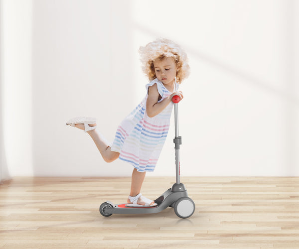 Qplay Potkulauta Mika on suunniteltu tukemaan lasten motorista kehitystä ja tasapainotaitoja. Kolmipyöräinen rakenne tarjoaa vakaan ajokokemuksen, mikä on erinomainen valinta pienille ensikertalaisille. Potkulaudan ohjaustanko on säädettävissä kolmelle eri korkeudelle, joten se kasvaa lapsesi mukana ja tarjoaa pitkäaikaista käyttöä. Ohjaustangon elastinen ohjausjärjestelmä mahdollistaa hallinnan ja ohjauksen kehon liikkeillä, mikä opettaa lapsia käyttämään tasapainoaan luonnollisesti.Turvallisuus ja Kestävyys