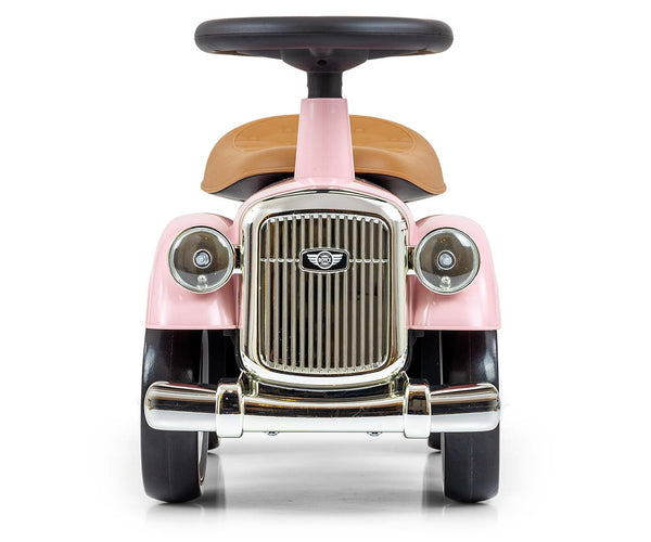 Vaaleanpunainen Royce potkuauto henkii nostalgista retrotyyliä, mikä tekee siitä ihastuttavan lisän mihin tahansa leikkihuoneeseen. Auton design on viimeistelty hienostuneesti, ja siinä yhdistyvät klassiset yksityiskohdat moderniin käytännöllisyyteen. Lisäksi auton takaosaan sijoitettu pieni tavaraosasto tarjoaa kätevän säilytystilan leluille ja muille tarvikkeille matkan aikana.