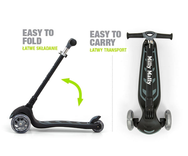 Potkulauta Boogie Musta on suunniteltu intuitiiviseen ohjaukseen. Skootterin ohjaaminen käy helposti lapsen siirtäessä painoaan sivulle, mikä auttaa kehittämään motorisia taitoja sekä tasapainoa. Tämä ominaisuus tekee potkulaudasta erinomaisen valinnan lapsille, jotka ovat siirtymässä nelipyöräisistä ajoneuvoista kaksipyöräisiin.Värikästä ja hauskaa ajoa LED-valoilla