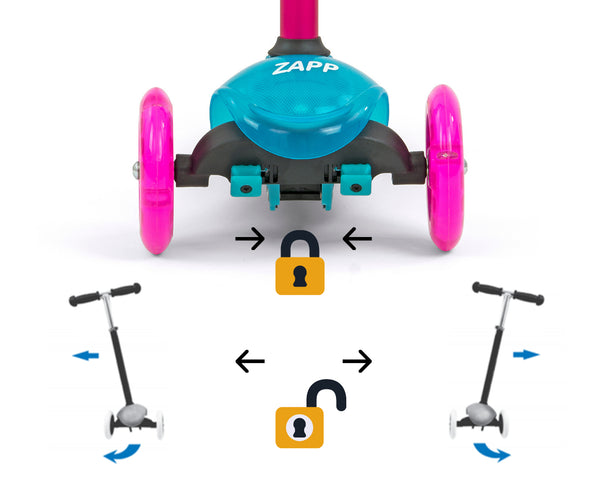 Zapp-potkulauta on saatavilla useissa houkuttelevissa väreissä, kuten pinkki, punainen, vihreä, sininen ja musta. Tyylikkään ulkonäön lisäksi potkulaudan etupyörät on varustettu LED-valoilla, jotka lisäävät näkyvyyttä ja turvallisuutta pimeässä liikuttaessa.