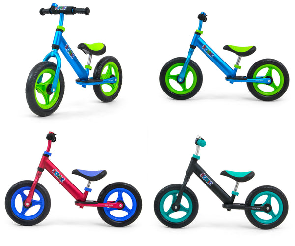 Kiitos 12 tuuman ilmaton renkaiden ja vahvistetusta kevyestä materiaalista valmistetun leveän renkaiden, jotka tarjoavat vakautta ja turvallisuutta eri pinnoilla, lapsi oppii nopeasti ylläpitämään tasapainoa. Säädettävä ohjaustanko ja ergonomisesti muotoiltu satula mahdollistavat korkeuden optimaalisen säädön, joten pyörä "kasvaa" nuoren pyöräilijän mukana. Liukumattomat kahvat suojuksilla suojaavat käsia. Lisäksi satulan alla oleva taso tarjoaa tukipisteen jaloille ajaessa.