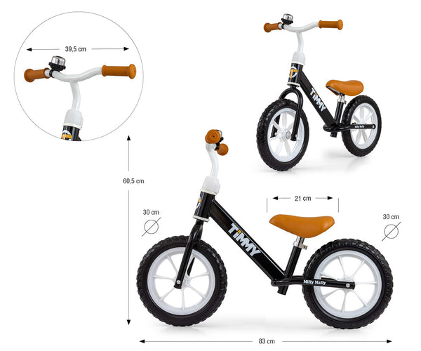 Juoksupyörä TIMMY on suosittu lasten pyörä, joka auttaa oppimaan tasapainoa ja koordinaatiota. Se on kevyt kaksipyöräinen ajoneuvo, jossa ei ole polkimia eikä ketjua. Sen sijaan lapset liikkuvat työntämällä jaloillaan maata vasten, mikä auttaa heitä vähitellen saamaan itseluottamusta ja kaksipyöräisen ajotaidon.
