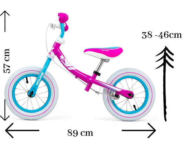 Liukumattomat pehmeät kädensijat suojakoteloilla suojaavat lapsen käsiä, ja säädettävä istuimen ja ohjaustangon korkeus mahdollistavat pyörän säätämisen lapsen pituuden mukaan. Siinä on myös ohjausrajoitin - turvaominaisuus, joka estää ohjaustangon kääntämisen siten, että ajaminen on mahdotonta. Lisäturvaa ja hauskuutta tuo asennettu kello, joka varoittaa muita tielläliikkujia.