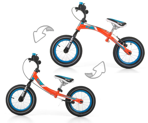 Potkupyörä YOUNG yhdistää muotoilun käytännöllisyyteen. Pyörässä on kääntyvä runko, mikä tekee siitä ihanteellisen 3–6-vuotiaille lapsille. Tämän ansiosta lapsesi voi nauttia lempipyörästään pidempään, sillä pyörä "kasvaa" lapsesi mukana.