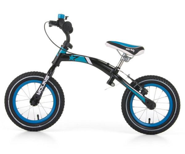 Juoksupyörä YOUNG, seuraten lastasi kävelyillä ja ajeluilla, tukee tasapainon ylläpidon harjoittelua, motoriikkaa sekä ohjaamista ja jarruttamista. Pyörä auttaa myös lastasi oppimaan arvioimaan nopeuden ja etäisyyden oikein. Näin lapsi kehittyy oikein ja nopeasti.