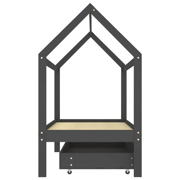Harmaa lasten sängynrunko laatikolla Rihan 80x160cm (mänty)