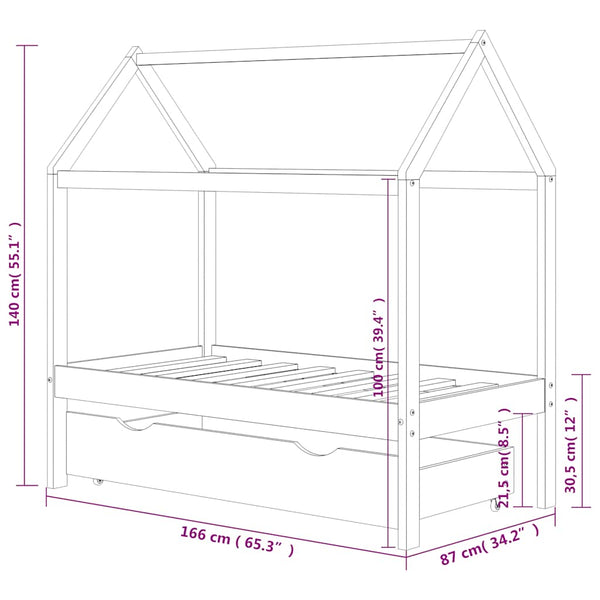 Tämä puinen lasten sängynrunko vetolaatikolla on käytännöllinen ja koristeellinen lisä minkä tahansa makuuhuoneen sisustukseen.