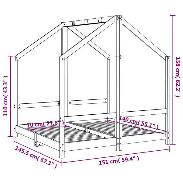 Valkoinen lasten sängynrunko Zinovii 2x(70x140)cm (mänty)