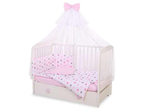 Tämä setti sopii sekä 120x60 cm että 140x70 cm kokoisiin pinnasänkyihin, joten se on monikäyttöinen ja pitkäikäinen valinta.