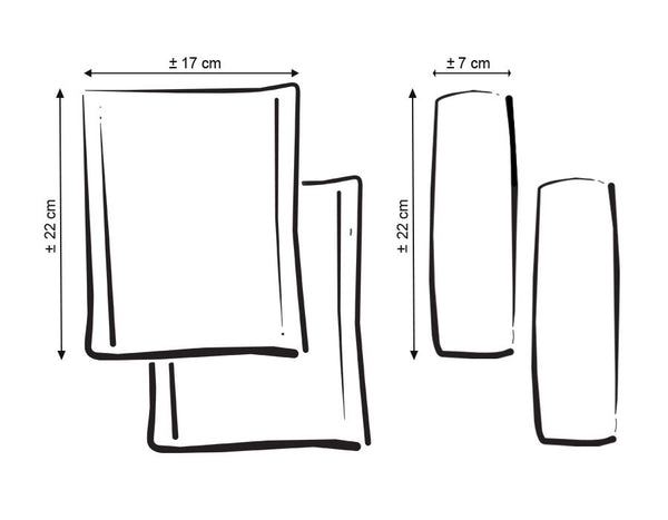 Pehmusteet tulevat kahden setin paketissa, joten voit käyttää niitä sekä turvakaukalossa että lastenvaunuissa. Niiden kätevä koko, 22x17 cm, mahdollistaa niiden käytön eri istuinmalleissa. Kun pehmusteet on asennettu, niiden koko on 22x7 cm, mikä takaa lapsesi mukavuuden matkan aikana.