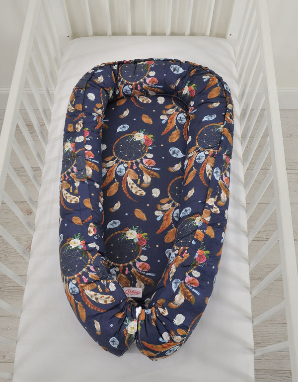 Bobono-unien siepparit tummansininen vauvan pesä on täydellinen ratkaisu vauvan ensimmäisille kuukausille. Tämä kaksipuolinen, korkealaatuinen vauvan pesä on valmistettu Oeko-tex