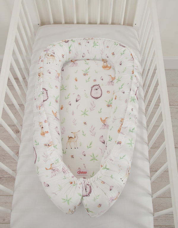 Vauvan unipesä kaksipuolisena Premium Cocoon - metsän pehmeys.