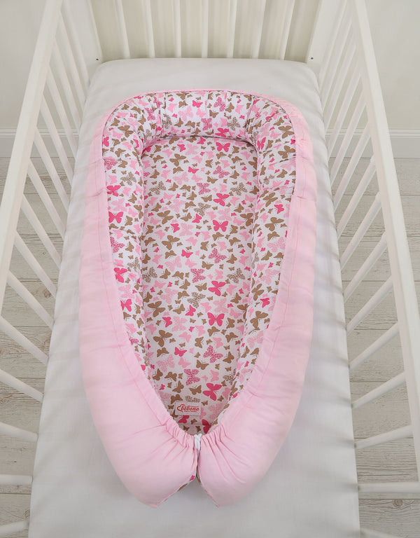 -sertifioitu eikä sisällä optisia kirkasteita. Pesä rajoittaa tilaa vauvan ympärillä, jotta hän voi vähitellen siirtyä sikiöasennosta pystyasentoon. Kun vauva nukkuu heti syntymän jälkeen suoraan pinnasängyssä, hän voi tuntea olonsa epämukavaksi, koska hän yhtäkkiä löytää itsensä liian suuresta tilasta.