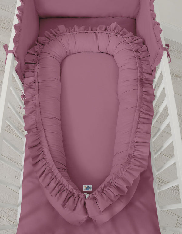 Vauvan pesän pehmeät ja korkeat reunat suojaavat vauvaa ja vaimentavat äänet, takaen rauhallisen unen. Pesällä on monenlaisia käyttömahdollisuuksia ja se palvelee vauvaa pitkään. Pesän kokoa voi säätää nyöreillä - kiristämällä tai löysäämällä pesää, se kasvaa lapsen mukana. Kun pesä on täysin avattu, saamme pitkän suoran nukkumispinnan, jonka korkeat reunat toimivat suojana.
