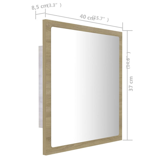 Sonoma tammi led-kylpyhuonepeili 40x8,5x37cm akryyli